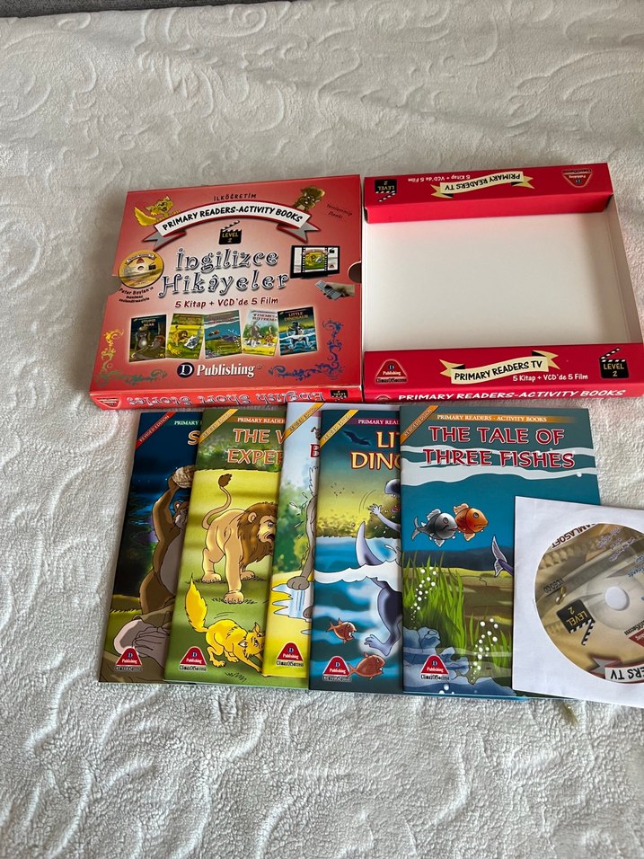 İngilizce öğrenmeyi destekleyen 5 çocuk hikaye kitabı, VCD ve filmler içerir. Kitaplarda hayvanlar ve klasik hikayeler yer alır.