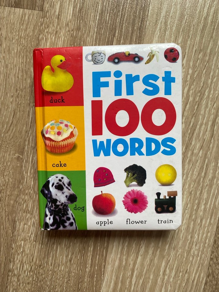 Ilk Ingilizce kelimeleri, boyu 12*16, iyi durumda, kalın kartonlu sayfalar, silinebilir