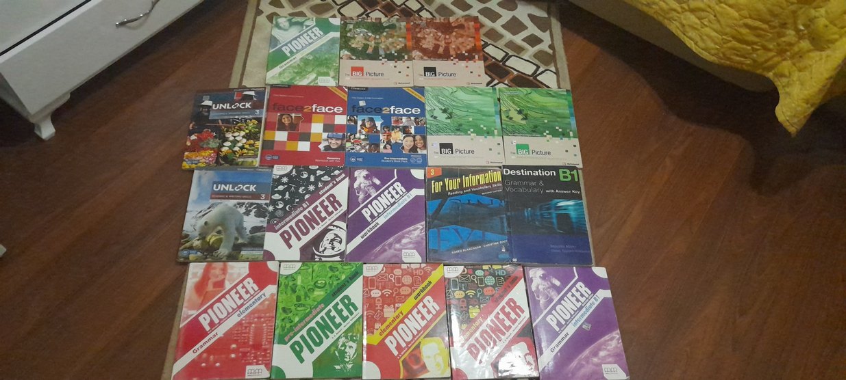 Pioneer, BIG Picture, face2face ve Destination serilerinden kelime ve okuma becerilerini kapsayan çeşitli sınav hazırlık kitapları seti. ayrı ayrı almak isteyen olursa benimle iletişime geçerse yardımcı olurum. hepsinde bazı yerler yapılı ama kursun kalemle yapılmış silinip kullanılabilir. Bu fiyat 18 kitap fiyatıdır.
