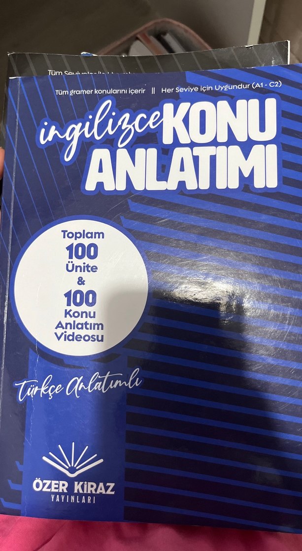 Türkçe açıklamalı, 100 ünite ve 100 konu anlatım videosu içeren İngilizce konu anlatımı kitabı. Tüm seviyelere uygundur (A1-C2). Sadec birkaç sayfasında tenkli kalemle altı çizilmiş yerler var