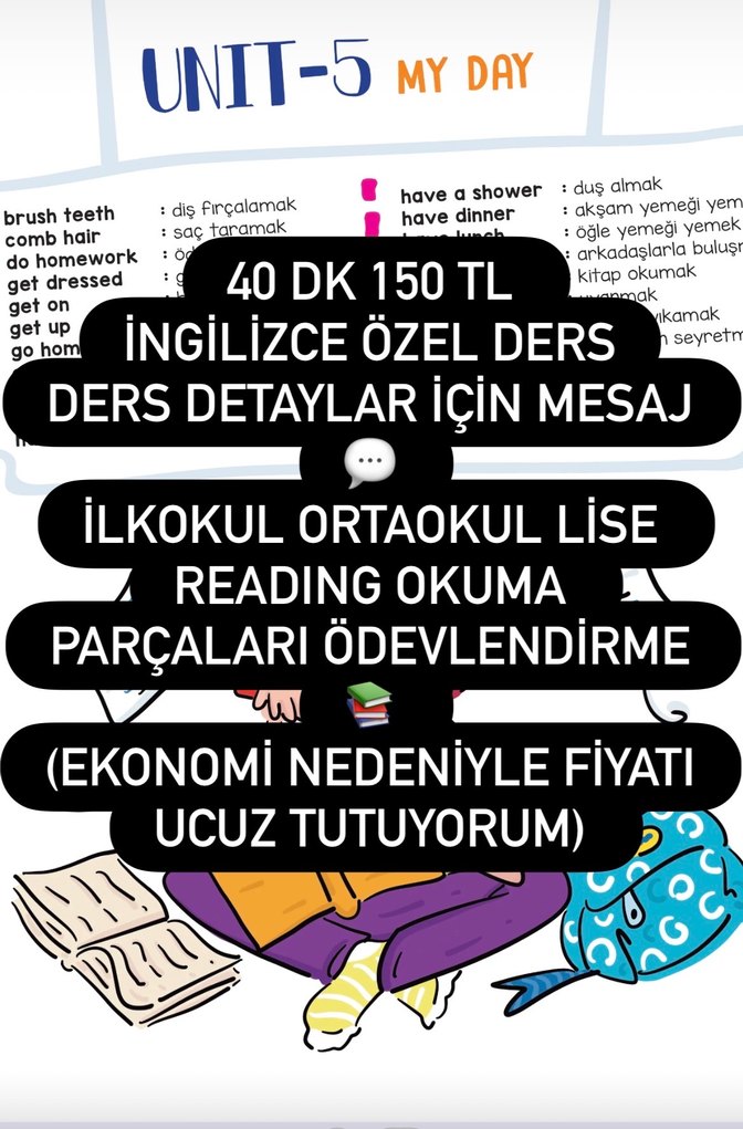 İngilizce özel ders 40 dakika 150 TL, okuma, ödevlendirme ve okul seviyeleri için. Detaylar için mesaj atınız.