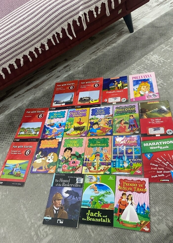 Ürünler kullanılmıştır,üzerinde isim yazılması dışında deforması yırtılması yoktur toplam 20kitap kibritçi kız da dahil fotoda yok
