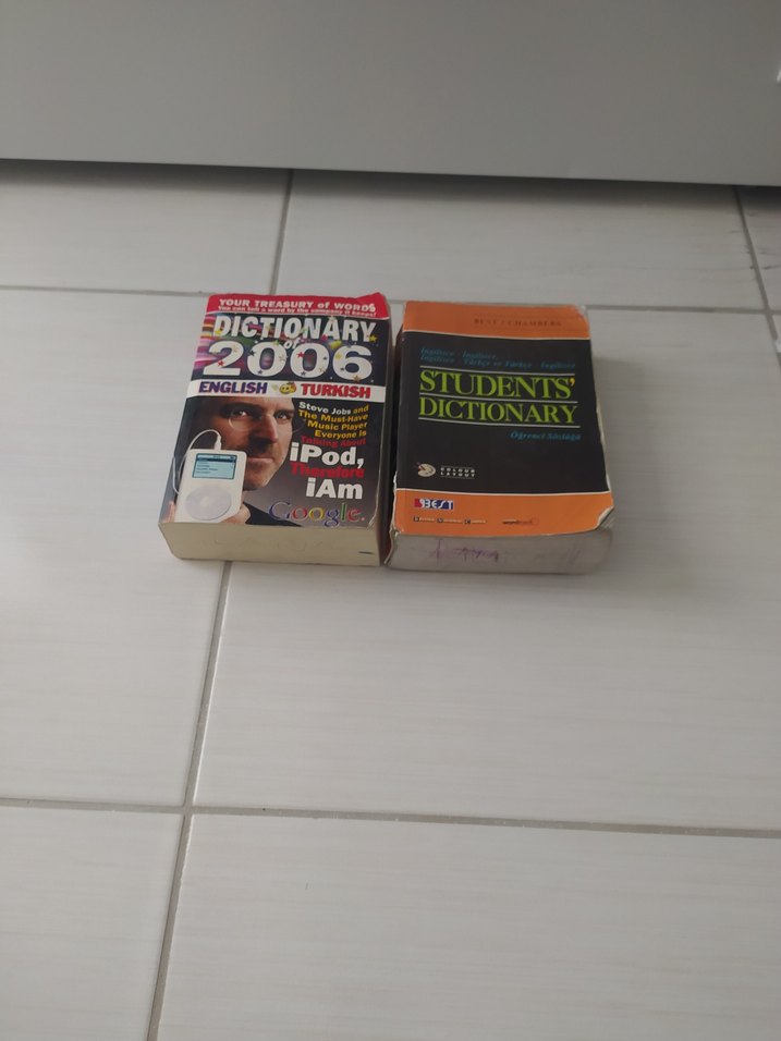 2006 tarihli İngilizce-Türkçe sözlük kitapları, öğrenci sözlüğü de dahil, dil öğrenimi ve sınav hazırlığı için uygun. ikisinin toplam fiyatidir. tekli de satılır sağdaki 99 soldaki 150tl. fotoda gözüktüğü gibi bazı yazılar vardır baska sorunu yok