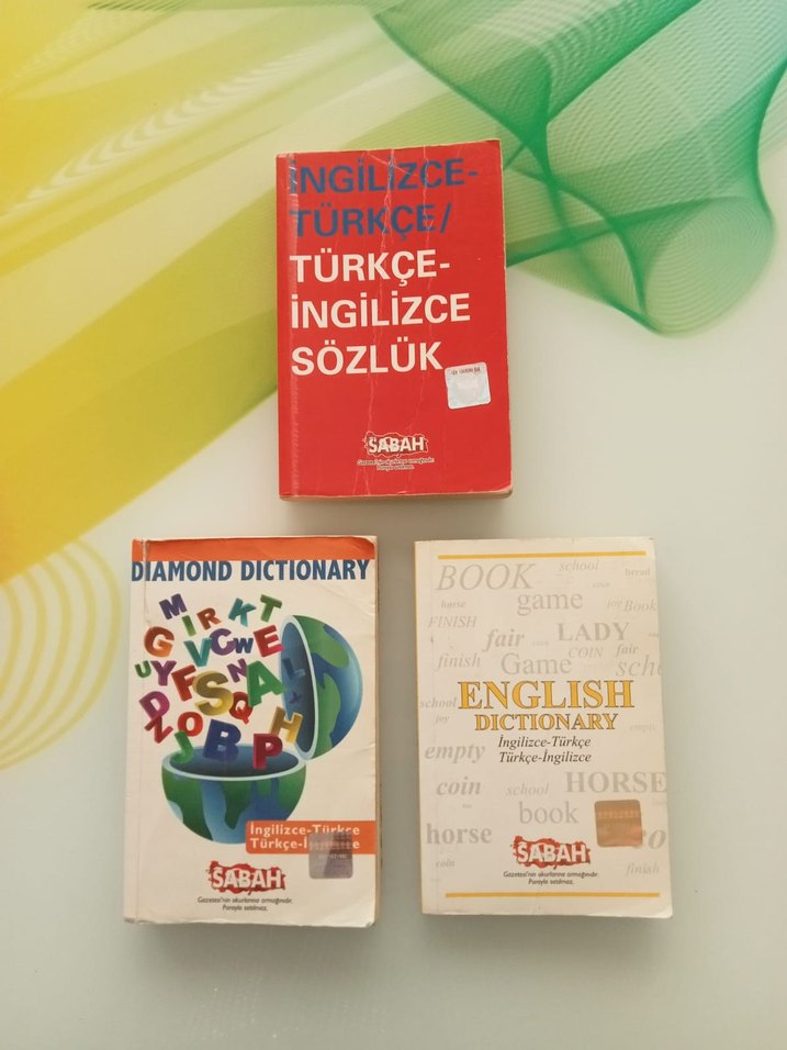 Sabah Yayınları'ndan İngilizce-Türkçe ve Türkçe-İngilizce çeviri içeren üç sözlükten oluşan set. Dil referansı için uygun, kompakt boyutta. Toplam fiyatı.