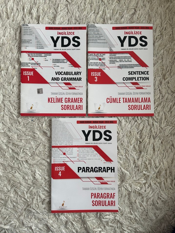 İngilizce YDS için kelime ve gramer, cümle tamamlama ve paragraf soruları içeren sınav hazırlık kitapları seti.