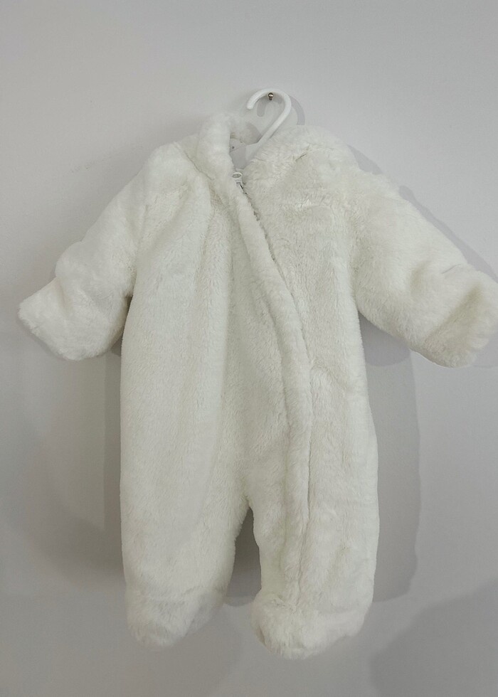 Çok kaliteli bir ürün. Bebeği terletmeden sıcak tutuyor. az kullanıldı. Renk: beyaz Beden: 0-3 ay Uni Baby deterjan (parfümsüz, hipoalerjeniktir) kullanarak 40 derecede yıkandı. Herhangi leke, yırtık vb. YOK! Evcil hayvan olmayan bir evde kullanıldı.