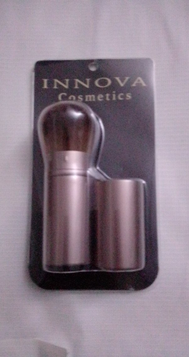 INNOVA Cosmetics markalı, yumuşak bej kıllara ve gri saplı makyaj fırçası. ️