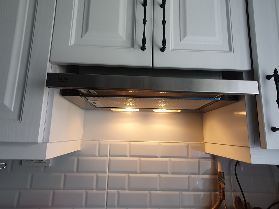 Mutfak tezgahını ve ocagi aydınlatan entegre ışıklı inox davlumbaz/aspiratör. Modern mutfaklara uyum sağlayan şık tasarım. Filtresi dahildir. inox,paslanmaz çelik