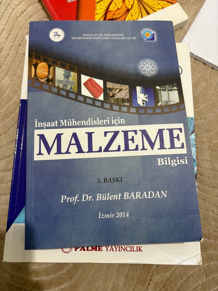 İnşaat mühendisleri için malzeme bilgisi içeren, Prof. Dr. Bülent Baradan tarafından yazılan 5. baskı kitap. İzmir 2014, Palme Yayıncılık.