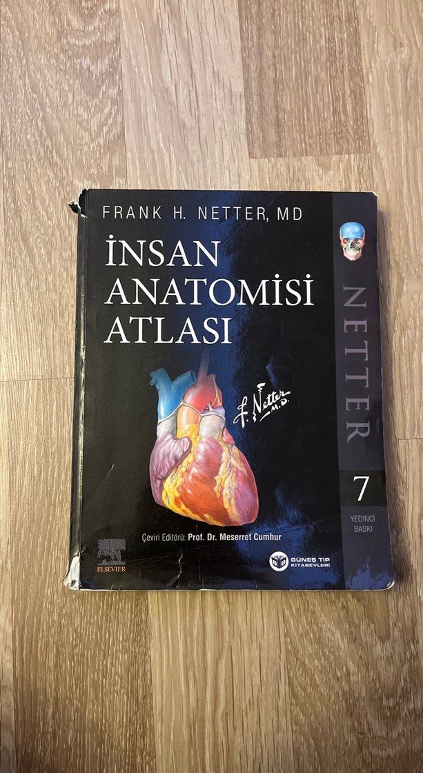 Frank H. Netter'in detaylı insan anatomisi çizimlerini içeren, Prof. Dr. Meserret Cumhur'un çeviri editörlüğünde hazırlanmış atlas. Kapağındaki defolar dışında içerisinde bir kalem izi dahi yoktur açıp kapamaktan kaynaklı defo mevcuttur sağlık sektöründe kullanılması gereken bir kitap
