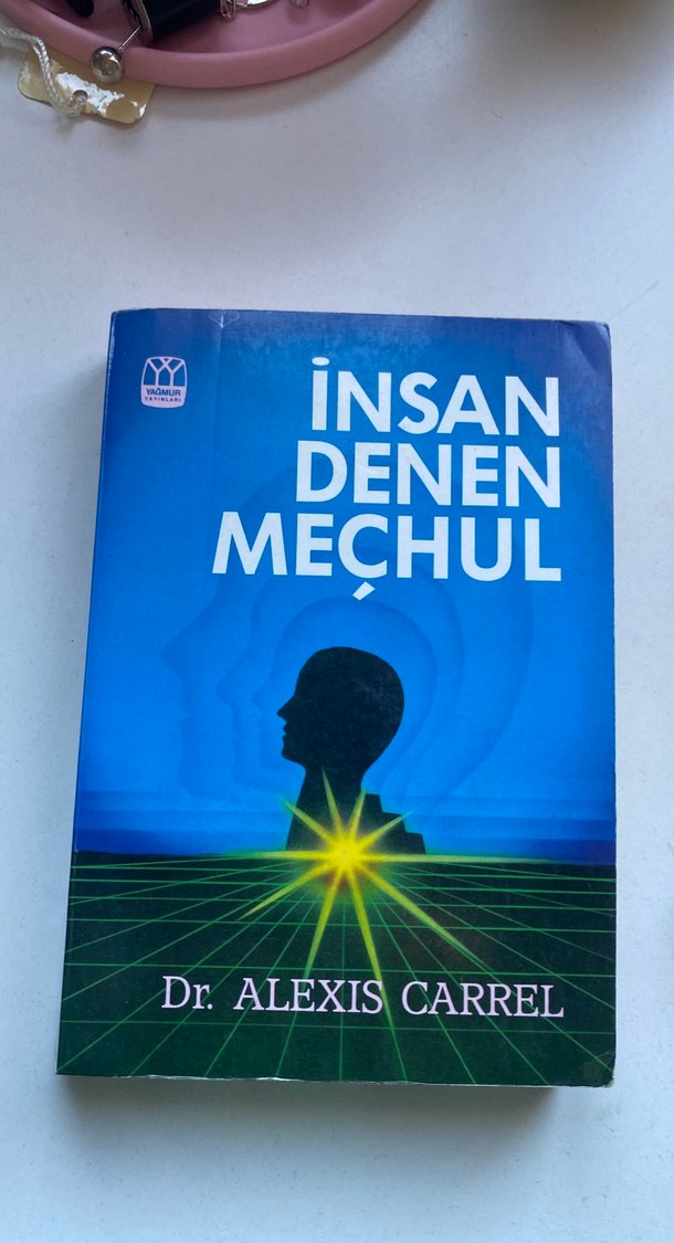 Dr. Alexis Carrel'in "İnsan Denen Meçhul" kitabı, insan doğası ve varoluş üzerine derinlemesine düşünceler içerir. Mavi kapakta siluet ve parlayan yıldız simgesi bulunur.