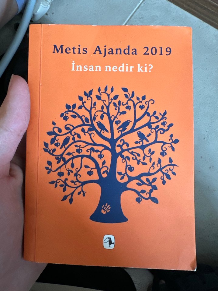 2019 Metis Ajanda "İnsan Nedir Ki?" başlıklı, insanlık ve varoluş temalarını işleyen şiir kitabıdır. Turuncu kapakta ağaç resmi bulunur.