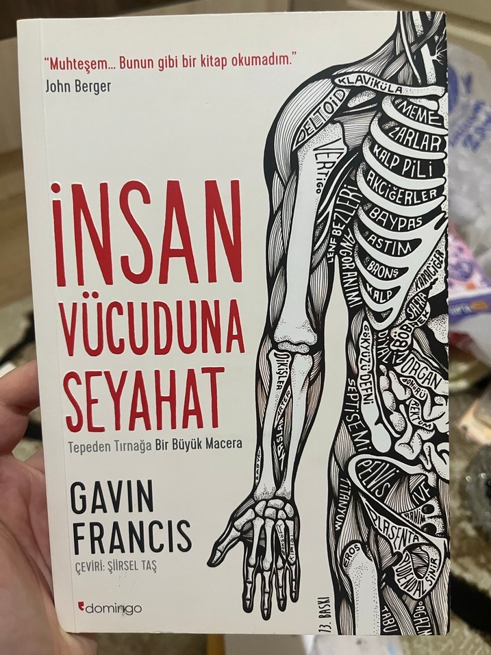 Gavin Francis'in 'İnsan Vücuduna Seyahat' adlı sağlık kitabı, insan anatomisini detaylıca keşfeder ve dikkat çekici yorumlar içerir. Kapakta özgün anatomi çizimi bulunur.