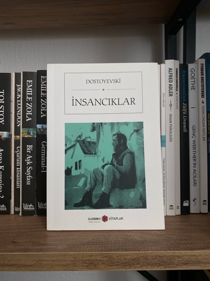 Dostoyevski'nin İnsancıklar romanı, sade kapak tasarımı ve oturan figür illüstrasyonuyla klasik edebiyat koleksiyonunda yer alıyor.