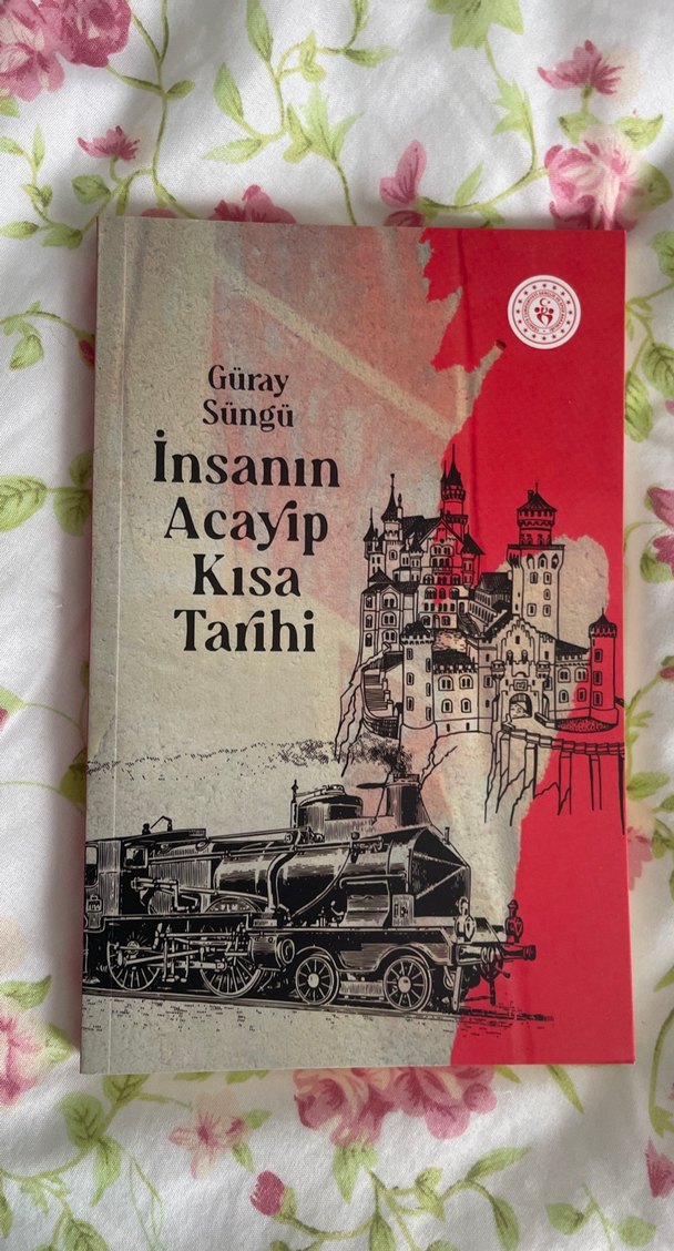 Güray Süngü'nün "İnsanın Acayip Kısa Tarihi" adlı romanı, ilginç ve kısa tarih anlatılarını içerir. Kapakta tren ve kale çizimleri bulunur.