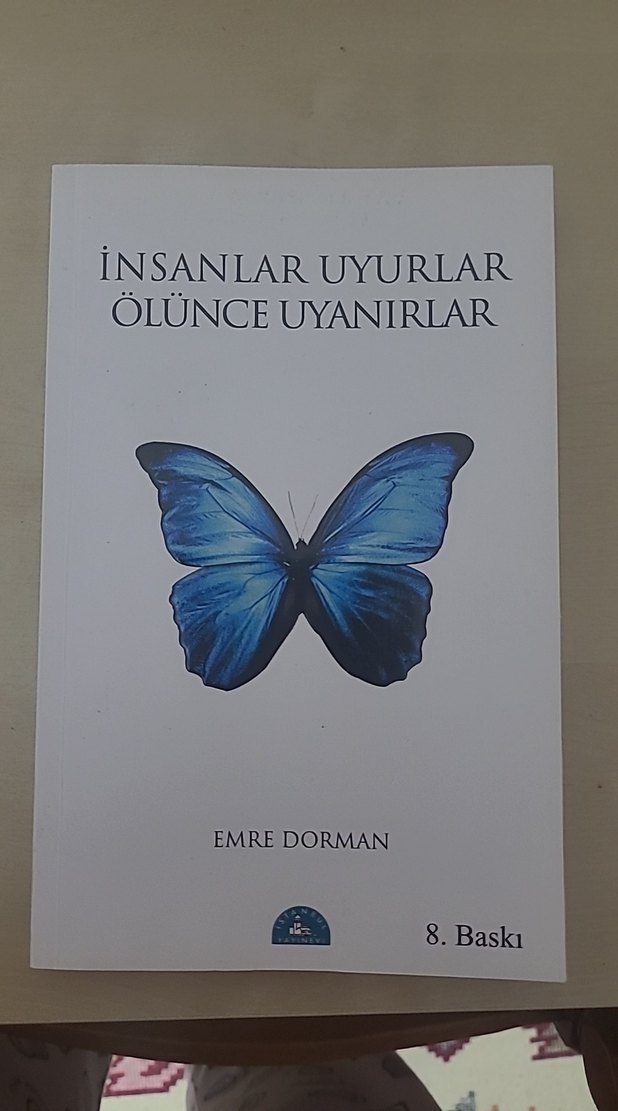 Emre Dorman'ın 8. baskı şiir kitabı "İnsanlar Uyurlar Ölünce Uyanırlar" kapağında mavi bir kelebek bulunur.