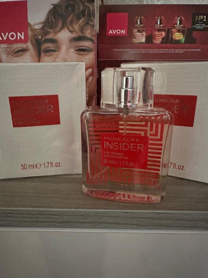 Insider kadın parfümü, 50 ml şişede, kırmızı geometrik desenli modern tasarıma sahip. Günlük şıklık için ideal. EDP parfumdur
