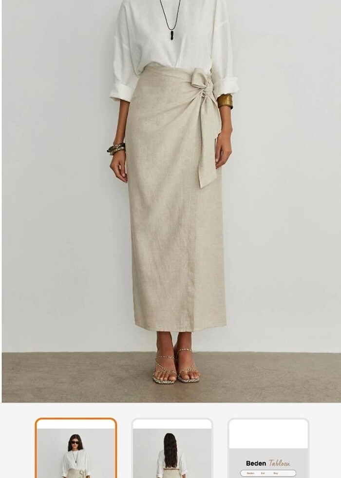 Yeni etiketli yeni sezon yandan bağlamalı etek krem renk