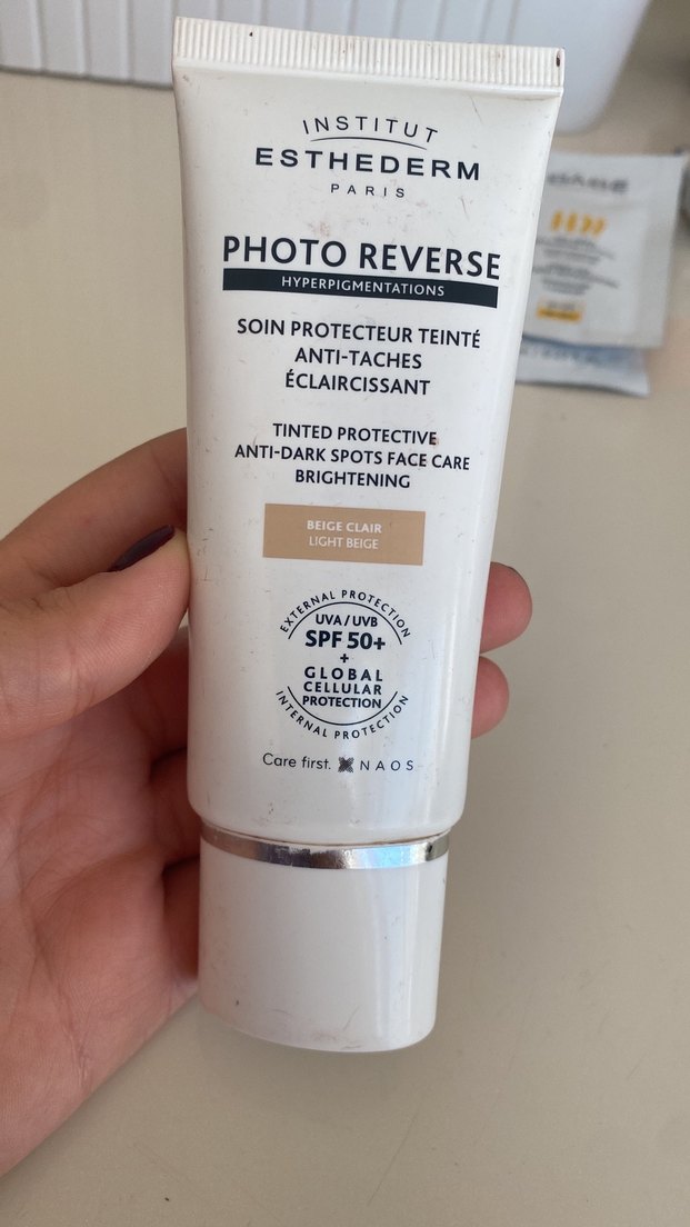 AZ KULLANILMIŞ | %75 DOLU - Institut Esthederm Photo Reverse SPF 50+ (Renkli/Leke Karşıtı) Ürün Detayları • Model:Leke Karşıtı Renkli Güneş Bakımı • Renk: Beige Clair (Light Beige) • Koruma: SPF 50+ (Yüksek Koruma), UVA/UVB ve Hücresel Koruma • Miktar Durumu: Tüpün yaklaşık %75'i doludur. Açıklama ve Özellikler Leke problemi olan ciltler için özel olarak formüle edilmiş, yüksek korumalı ve renkli güneş kremidir. Mevcut lekelerin rengini açmaya yardımcı olurken, aynı zamanda cilt tonunu eşitleyerek hafif bir kapatıcılık sağlar. • Leke Karşıtı Etki: Güneşe maruz kalındığında bile lekelerin koyulaşmasını engeller ve aydınlatıcı etki sunar. • Hücresel Koruma: Cilt yaşlanmasını hızlandıran iç ve dış hasarlara karşı global koruma sağlar. • Yapı: Hafif yapılı, ciltte ağırlık yapmaz. Light Beige (Açık Bej) rengi ile açık ve buğday tenlilere uygundur. Bu fiyat, ürünün dolu olan kısmının çok altında bir fiyattır. Yeni ürün almak yerine çok daha uygun fiyata sahip olabilirsiniz.
