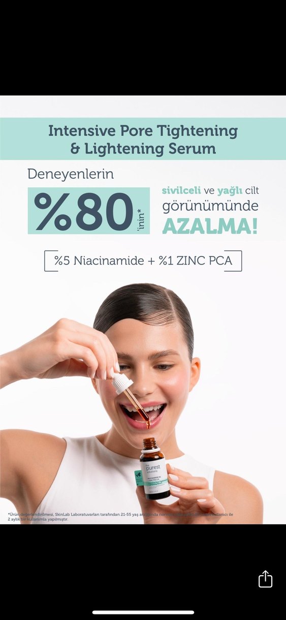 %5 Niacinamide ve %1 Zinc PCA içeren serum, sivilceli ve yağlı cilt görünümünü azaltır. Deneyenlerin %80'i olumlu sonuç almıştır. Ürün sadece 1 kere kullanıldı. Trendyoldan 400 tl ye yeni alındı 3gün oluyor.