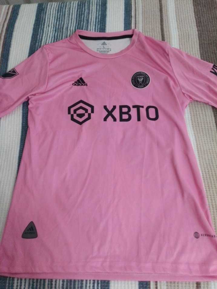 kısa kollu, pembe spor tişörtü. Sentetik kumaştan, baskılı 'XBTO' yazılı ve bisiklet yaka detaylıdır. ufak tefek belli olmayan leke vardır