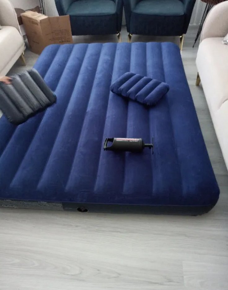 intex Çift Kişilik Şişme Yatak + 2 Yastık + Pompa / Kamp Seti Çift Kişilik Yatak Seti Paket İçeriği : 1 Adet Çift Kişilik Yatak 2 Adet Şişme Yastık 1 Adet Şişirme Pompası Ebatları :En : 152 cm Boy : 203 cm Yükseklik : 25 cm Havayı eşit olarak dağıtan sistem sayesinde sarkma yapmaz ve deforme olmaz. Kendi isteğinize göre sertlik ya da yumuşaklığını ayarlayabilirsiniz. 0,52 mm vinyl malzemeden imal edilmiştir. Kaliteli ve uzun ömürlü. Yüzeyi kadife kaplı. Çadırda, kampta, evde misafirleriniz için veya misafirliğe giderken kullanabileceğiniz pratik şişme yatak.