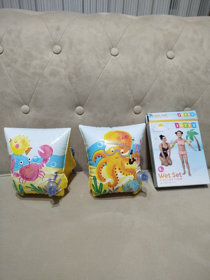INTEX renkli, deniz canlıları desenli çocuk kollukları. Wet Set koleksiyonuna ait, havuzda güvenlik için uygun.