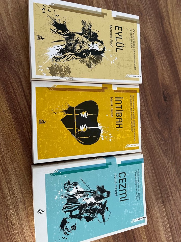 İnTiBAH, EYLÜL ve CEZmi adlı üç romanı içeren set, her biri farklı kapak tasarımı ve temalara sahip.