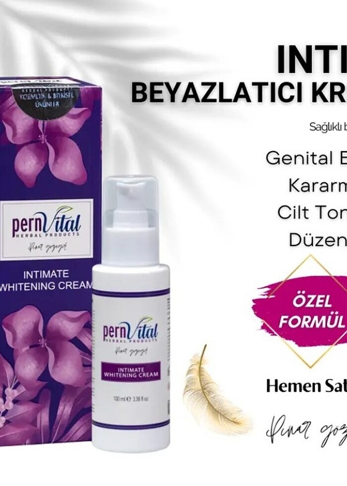 Genital bölge için uygundur. İlerleyen yaşlarda ya da ağda, kıl köklerinin tıraş edilmesi, cilt beyazlatma ve epilasyon gibi operasyonlar sonrasında ciltte kararmalar meydana gelebilir. İntim Beyazlatıcı Krem; dizler, dirsekler, hatta koltuk altı, bikini bölgesi ve özel bölgeler gibi en hassas bölgelerdeki koyu renkli cilt görünümünü aydınlatmaya yardımcı nemlendirici kremdir. Düzenli kullanımda içeriğindeki vitaminler, aktifler ve bitki özleri sayesinde cilt tonunuzu eşitler ve cildin/nem yağ ihtiyacını karşılayarak pürüzsüz bir görünüm sağlar. Eşit tonlu ve aydınlık bir cilt oluşumunu hedefler. Ayrıca güvenle kullanılabilecek içeriklere sahiptir. Kullanım: Günde iki kez az miktarda kremi ihtiyacınız olan bölgeye hafifçe masajyaparak uygulayın. Uyarılar: Haricen kullanılır. Çocukların erişemeyeceği yerlerde kendi ambalajında muhafaza ediniz.