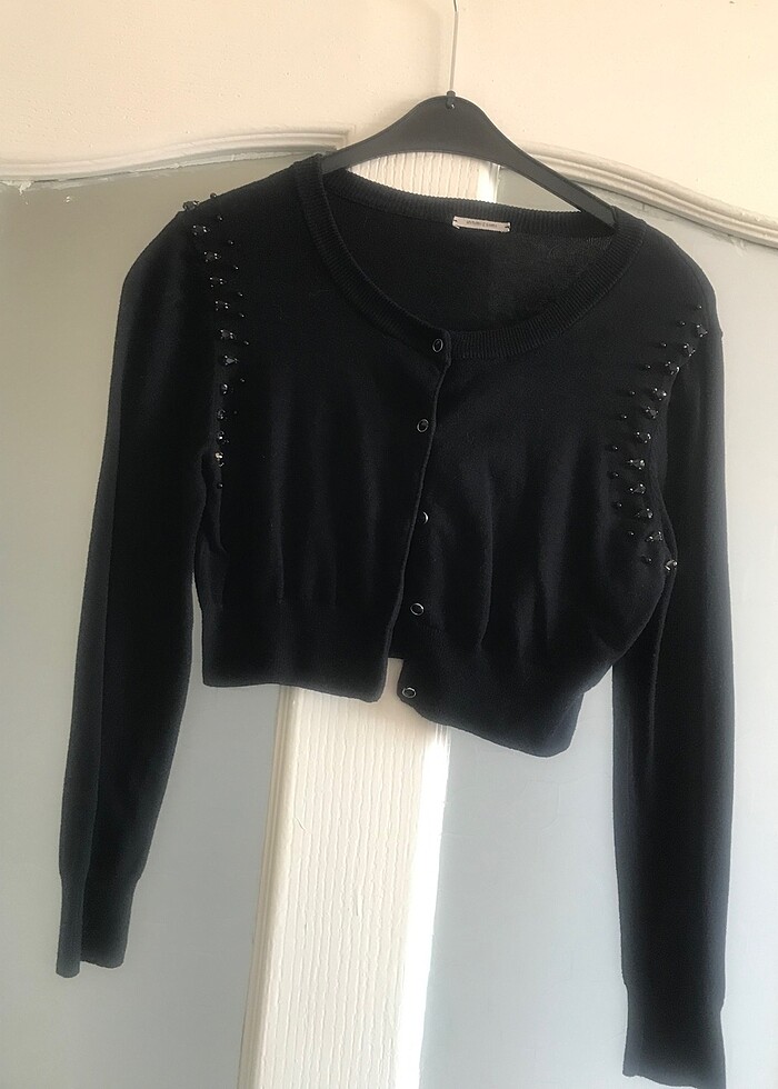 Kısa hırka m beden L beden içinde uygun esniyor, taşlı çok şık 1 defa kullandım temiz sorunsuz