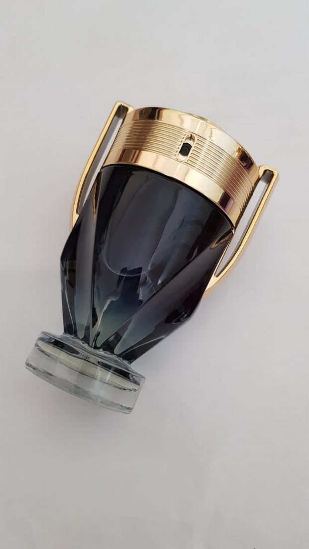 Koyu renkli, altın detaylı modern erkek parfümü. Ödül şeklindeki şişesiyle şıklık ve cesareti bir arada sunar.