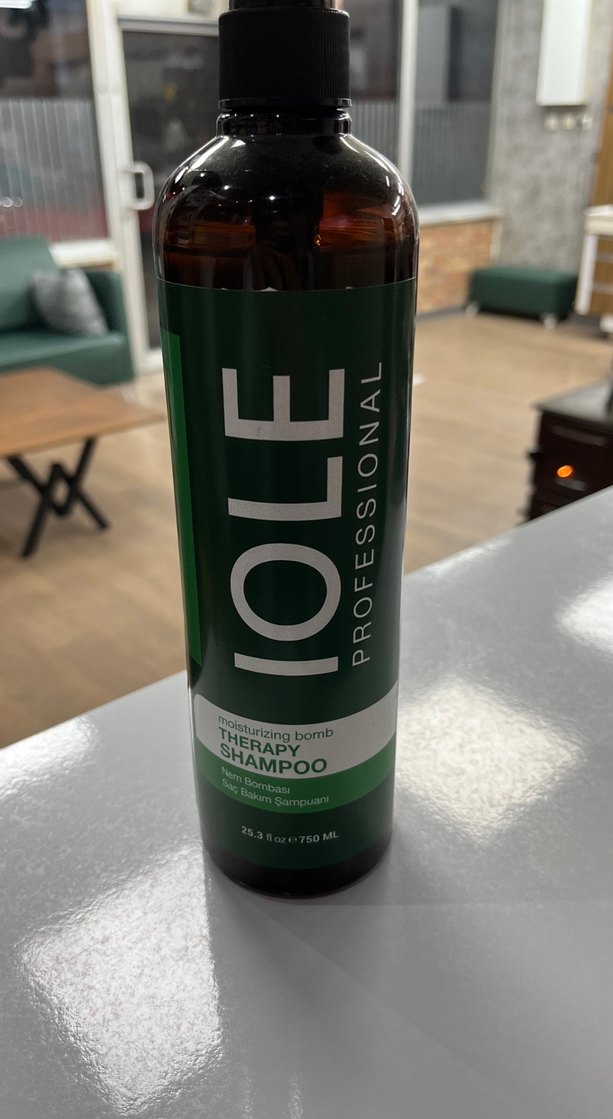 İole Profesyonel nemlendirici terapi şampuanı, yeşil bitkisel özlerle saçlara derin bakım ve nem sağlar. 750 ml şişede.