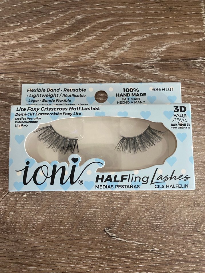 ioni 3D el yapımı yarı takma kirpikler, esnek bantlı, hafif ve tekrar kullanılabilir. Doğal görünüm için açık bej tonunda.