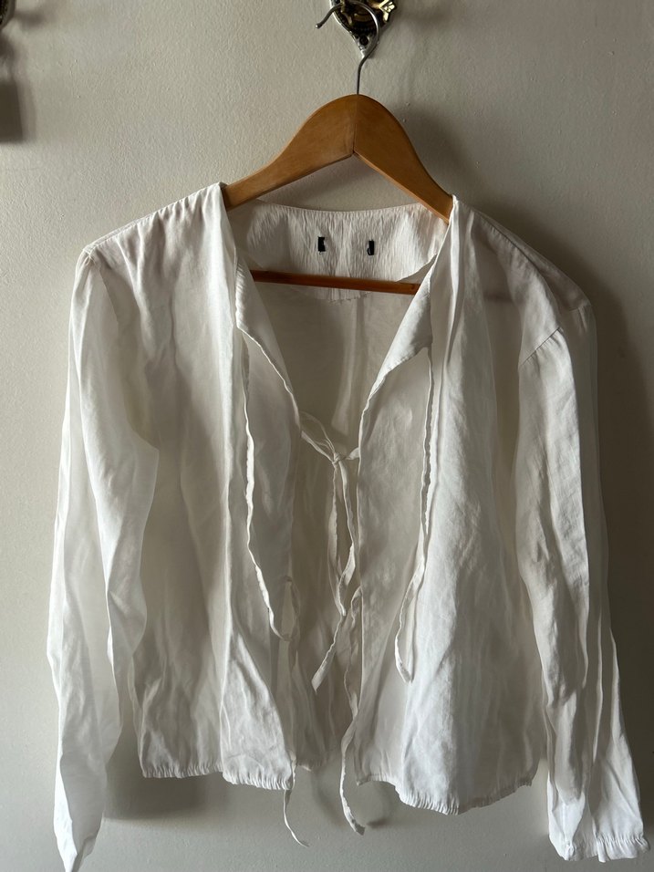 Beyaz kadın gömlek, ip bağlamalı ve salaş kesimiyle bohem tarz sunar ve günlük kullanıma uygundur. Önü açık kullanımı da çok güzel görünüyor bikini üstü olarak bile kullanılabilir. Hiç bir leke defosu yoktur. S bedene uygundur