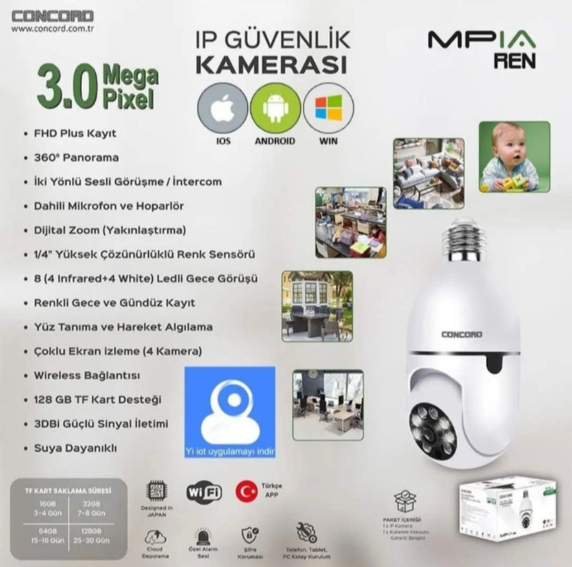 30 Mega Piksel çözünürlüklü beyaz IP güvenlik kamerası, iOS, Android ve Windows uyumlu. Sesli görüşme, mikrofon, hoparlör, yakınlaştırma, renk sensörü, LED gece görüşü, gündüz ve gece kayıt, hareket algılama, 4 kamera izleme, Wi-Fi ve SD kart desteği sağlar.