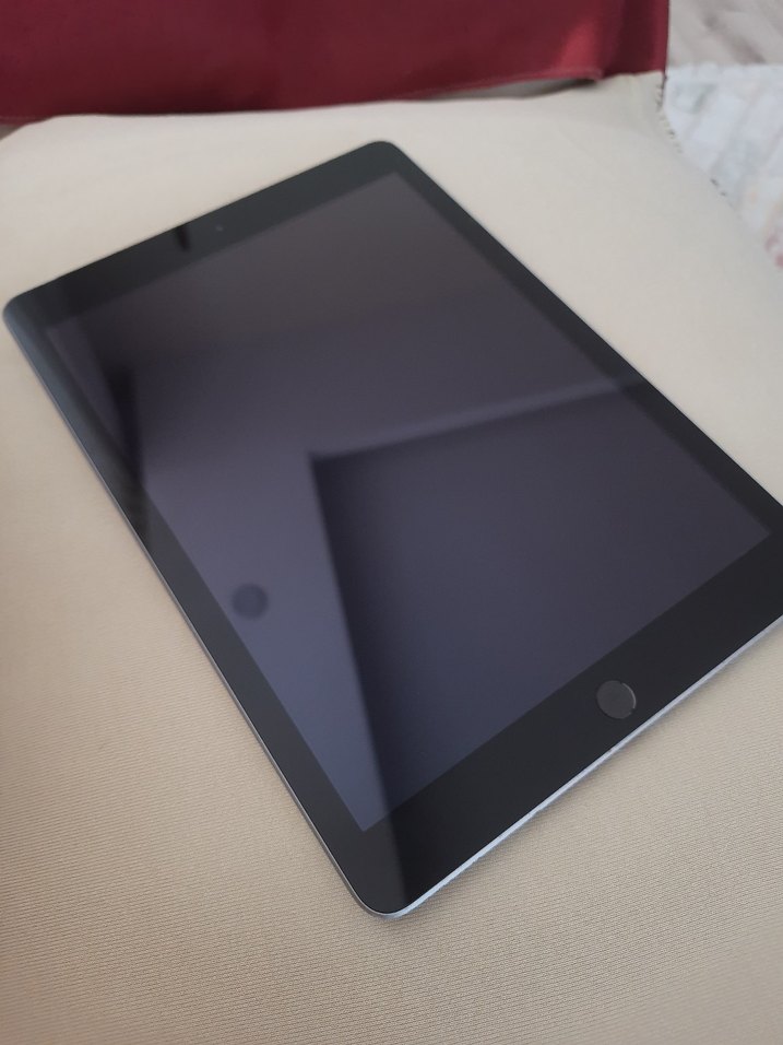 Gri renkte büyük ekranlı, dokunmatik ve ana ekran düğmeli tablet. iPad 5 nesil Depolama= 32gb RAM=2GB İşlemci=Apple A9 Pil 8.827 mAh Fiziksel durumu çiziksiz temiz Kutu orjinal Şarj başlığı mevcut 4G destekli Sim kart takılabiliyor.