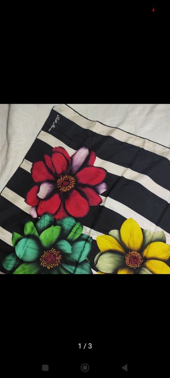 Kadın fular, piliseli tasarımı ve koyu, canlı çok renkli çiçek desenleriyle, yumuşak sentetik kumaştan üretilmiştir.