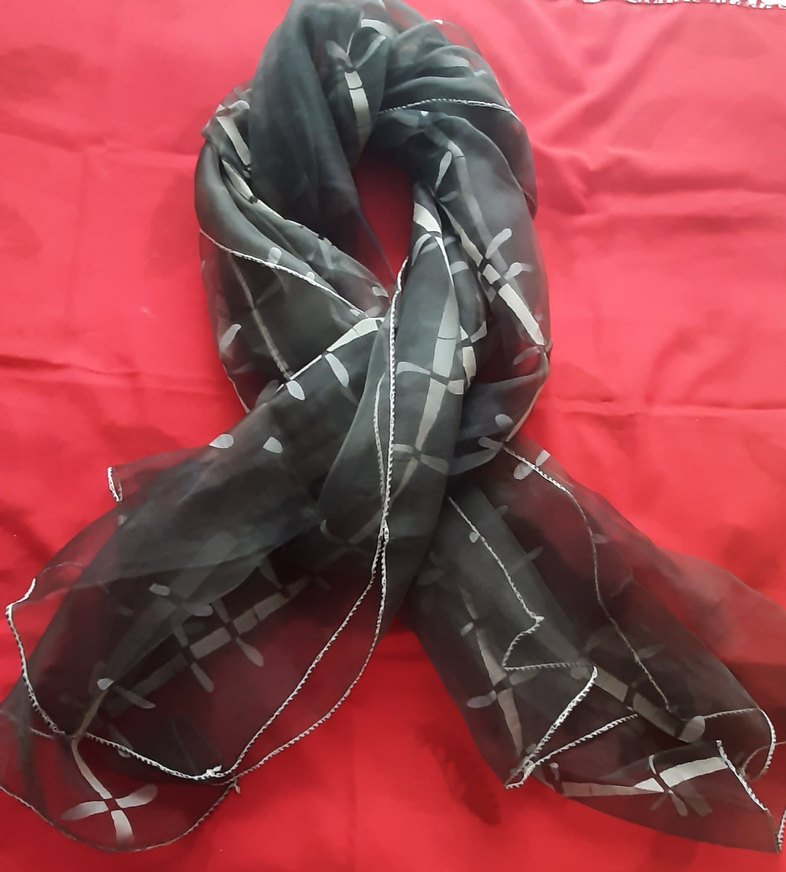 Kadınlar için ipek görünümlü şifon dokulu, füme siyah, sarı ve pembe renklerde üç adet fular/ Şal. Hiç kullanılmadı. Tertemiz. Fiyat Adet fiyatıdır.