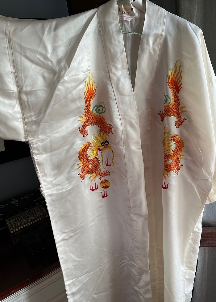 Hakiki ipek, astarlı, elde işlenmiş, Kimono sabahlık