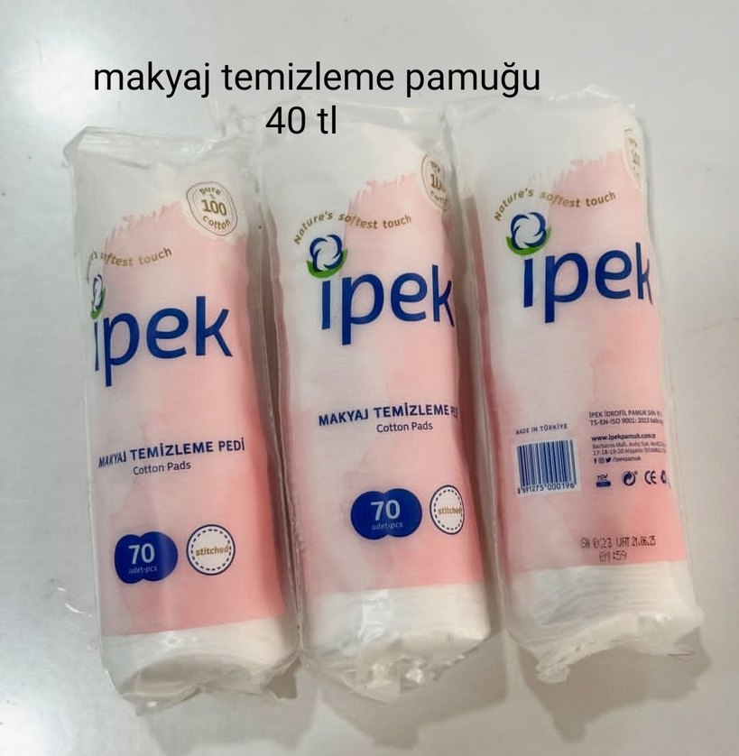 İpek markasına ait, 70 adet makyaj temizleme pamuğu içeren, cilde yumuşak ve nazik pamuk pedler.