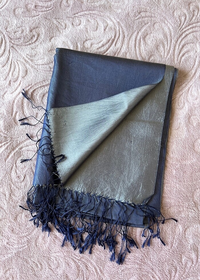 Gümüş ve mavi renk etiketi yok marka belirtemiyorum o yüzden ama ipek şal yıkandığı için deterjan lekeleri var üzerince ve iğne izleri var görselde belirttim hepsini o yüzden bu fiyat