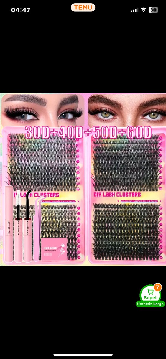 BU İLANI ALMAYINIZ İSTEĞE GÖRE İLAN AÇILACAKTIRRR 30D, 40D, 50D ve 60D kirpik kümeleri içeren takma kirpik seti. Kolay uygulama için yapıştırıcı ile birlikte gelir.