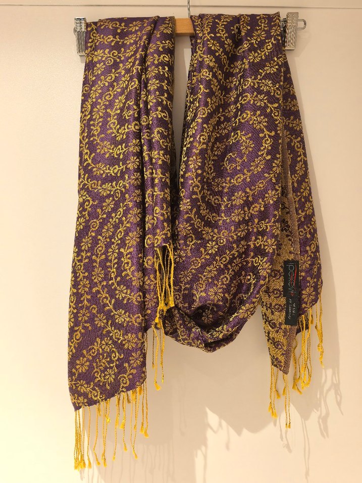 Severek kullandım. İhtiyaç fazlası olduğu için satıyorum. Ürün çift taraflı, hardal ve mor renk. Sorunsuzdur. Fular ya da şal olarak kombinlenebilir