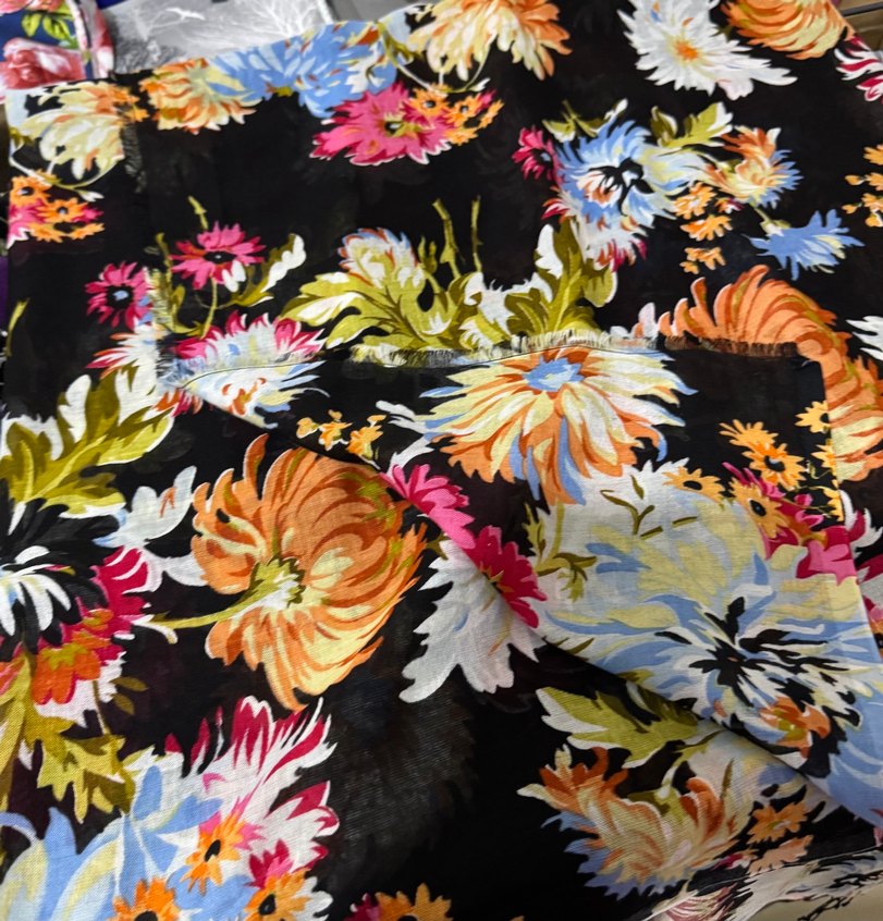 İpekevi Siyah Kasımpatı Desenli Modal Pamuk Şal