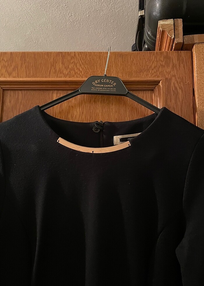 Uzun dar kalıp 38 beden ipekyol elbise siyah renk gold yaka detaylı az yırtmaçlı