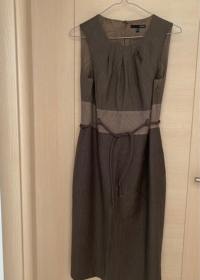 Kahverengi kolsuz elbise