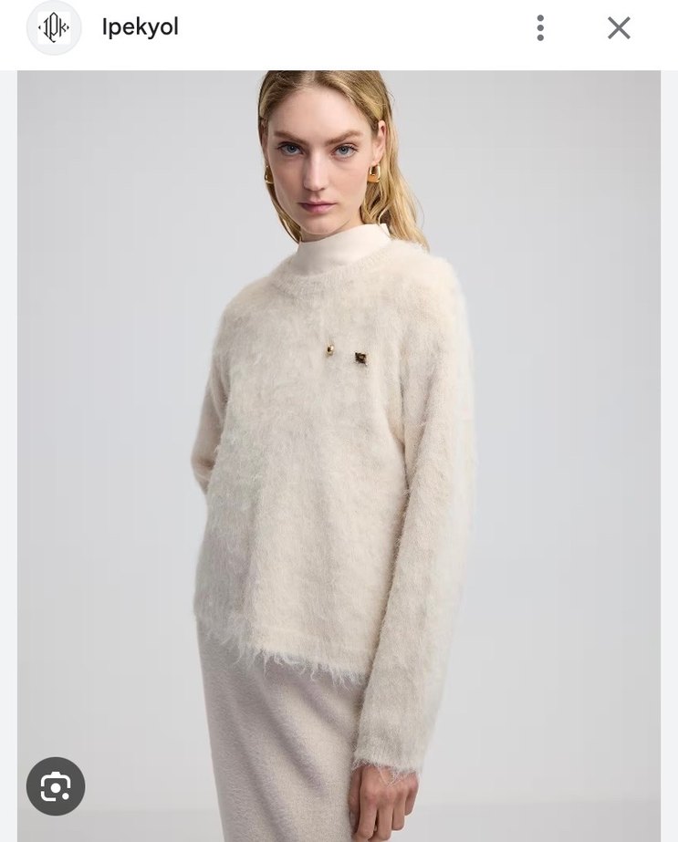 Bej renkli Ipekyol kazak, yuvarlak yakalı, uzun kollu ve bol kesimdir. Kısa boyu ve yumuşak kürk detaylarıyla rahat bir görünüm sunar. Sadece 1 kez bir kaç saat giyildidi isteyene görselini paylaşacağım # adl# #metwork# #kazak# #zara# #mango# #twist# #h&m# #stradivarius# #bershka# #zara# #ipekyol# #kaban# #ceket# #zara# #mango# #networkkaban#