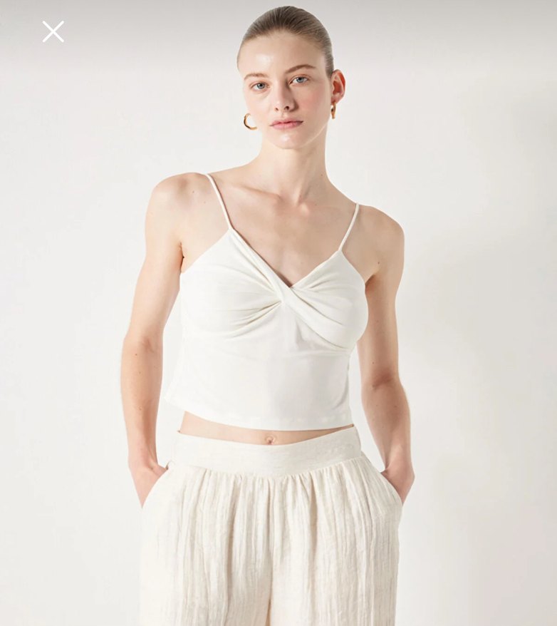 İpekyol Beyaz Askılı burgulu Crop Top