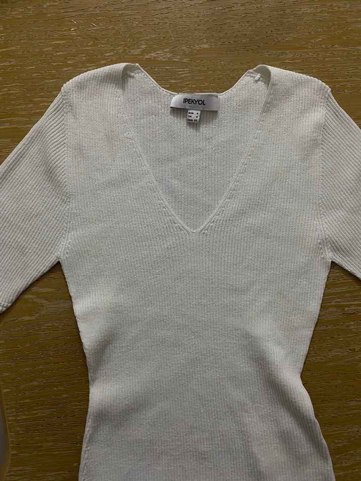 İpekyol Beyaz V Yaka Kısa Kollu Triko Kadın Kazak