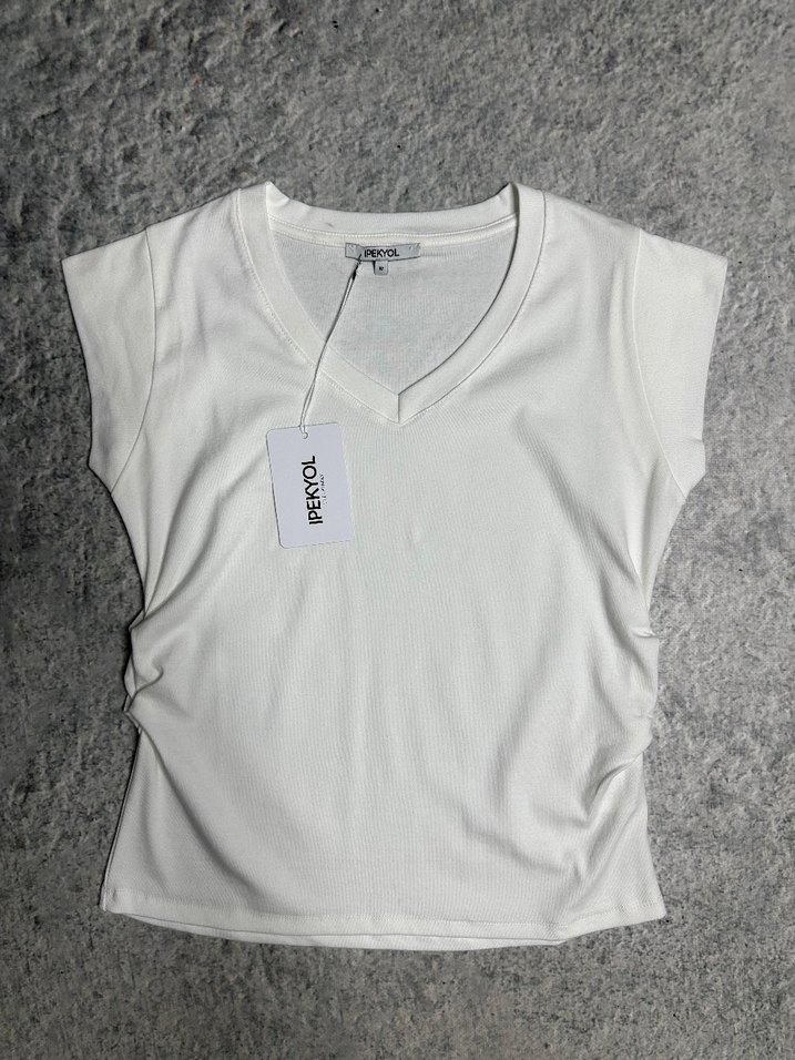 İPEKYOL marka bant arkası etiketli ️ kartlı Kadın V yaka tişört Yanları büzgülü SMLbeden serisi #ipekyol siyah rengi de mevcut . istenilen beden gönderilir .